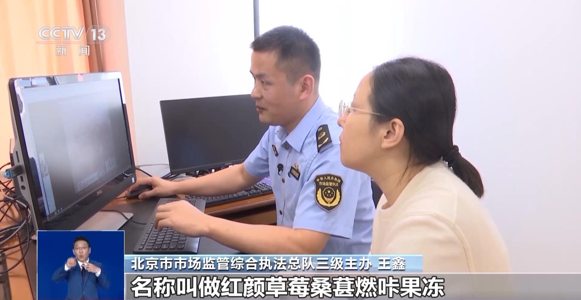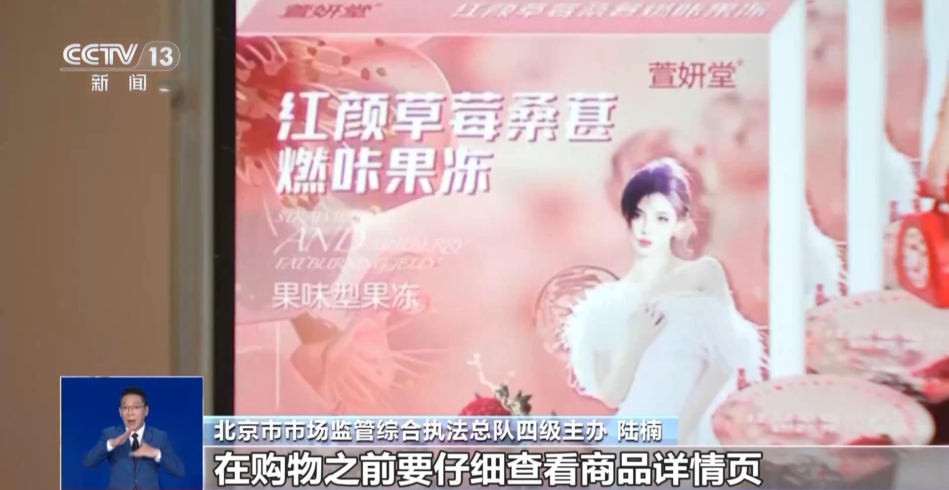 北京市市场监管综合执法总队三级主办 王鑫:我们可以看到这款产品的名称叫作红颜草莓桑葚燃咔果冻,它有食品生产许可证的编号,没有保健食品的蓝帽子标志,也没有药品的生产许可证,它只是一款普通的食品。