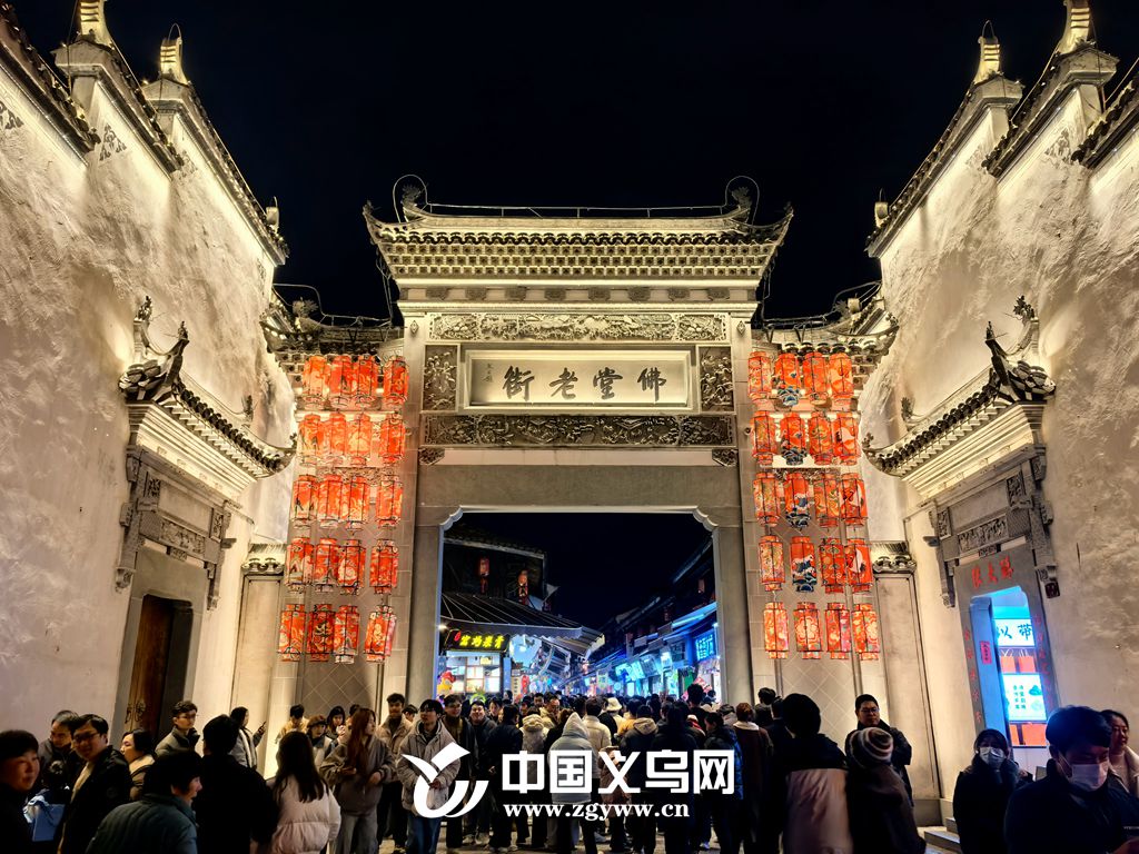 中国义乌网1月1日讯(记者 陈佳琪 编辑 童晓)12月31日晚,义乌佛堂古镇华灯齐放,瞬间化身流光溢彩的“不夜城”。一场集新年灯会、文化展演、非遗体验、祈福互动于一体的元旦盛宴在此拉开帷幕,邀八方游客共赴一场光影与文化交织的新年之约。