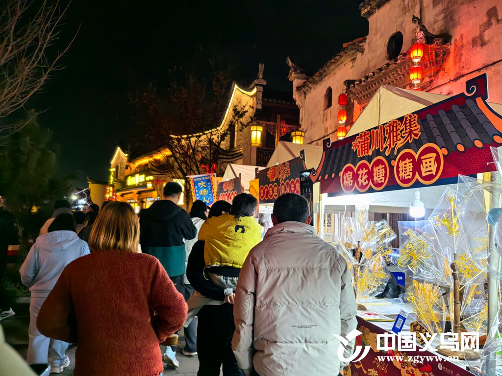 从白天到深夜,非遗龙舟游江、蒲川雅集年味市集、传统祈福仪式让游客沉浸式感受民俗魅力;乐队演出的歌声随老街灯火流淌,舞龙舞狮、婺剧道情街头快闪点燃节庆氛围;写祈福牌挂古树、放水上花灯漂江、提手工花灯漫步……多样互动玩法遍布古镇角落,让每个游客都能找到属于自己的新年乐趣。